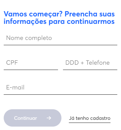 • Preencha seus dados e clique em “Continuar” ou na opção “Já tenho cadastro”;