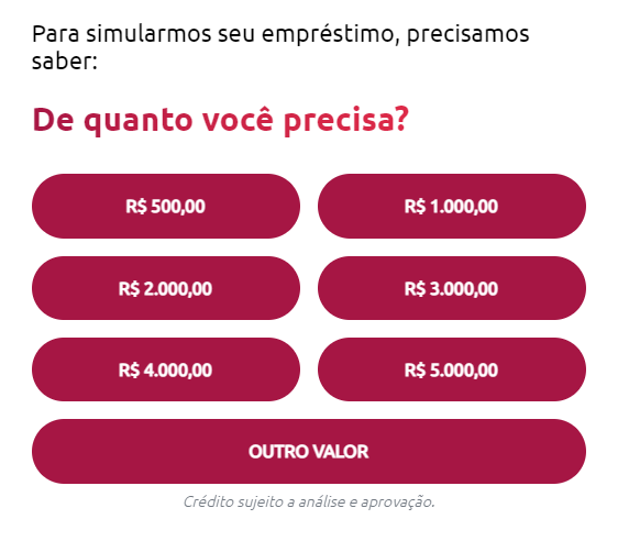 Além disso, vale ressaltar que a solicitação desse empréstimo é bem simples e rápida! Você pode fazer o pedido online, recebe uma resposta imediata e o dinheiro cai na sua conta em até 6 horas após a aprovação.